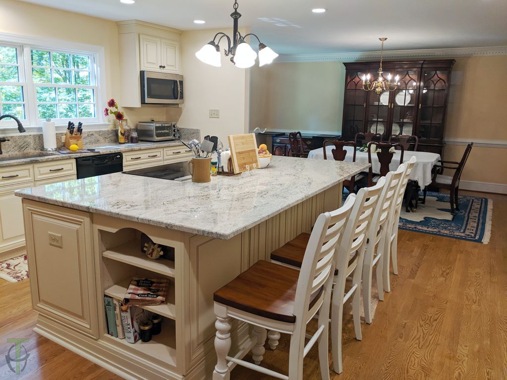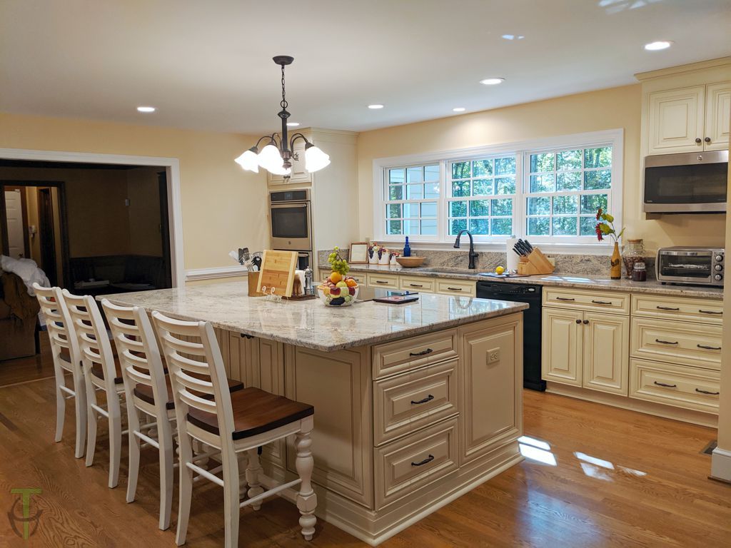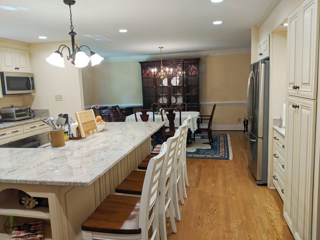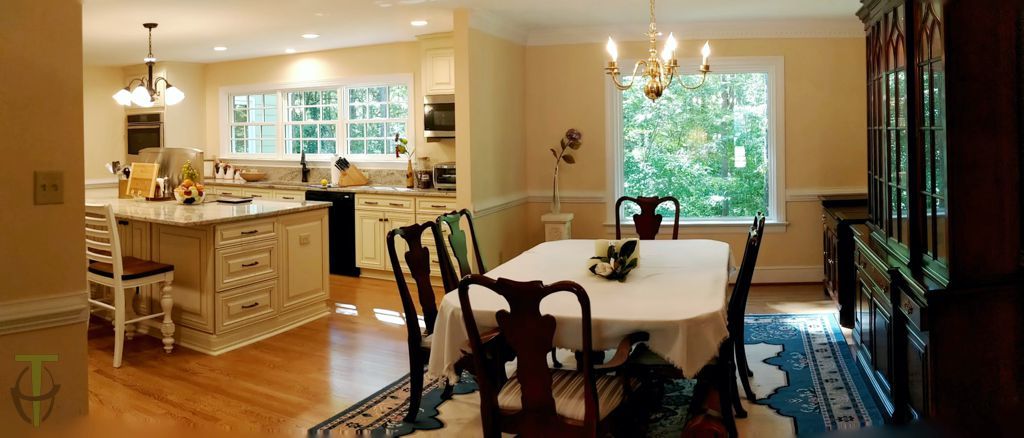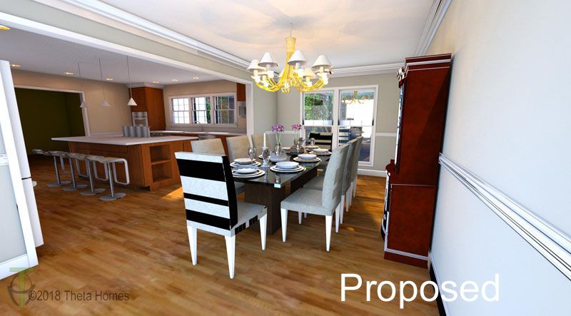 We added approximately 5 ft in the rear of the existing kitchen which allowed us to completely redesign the kitchen and expand the existing Dining room.