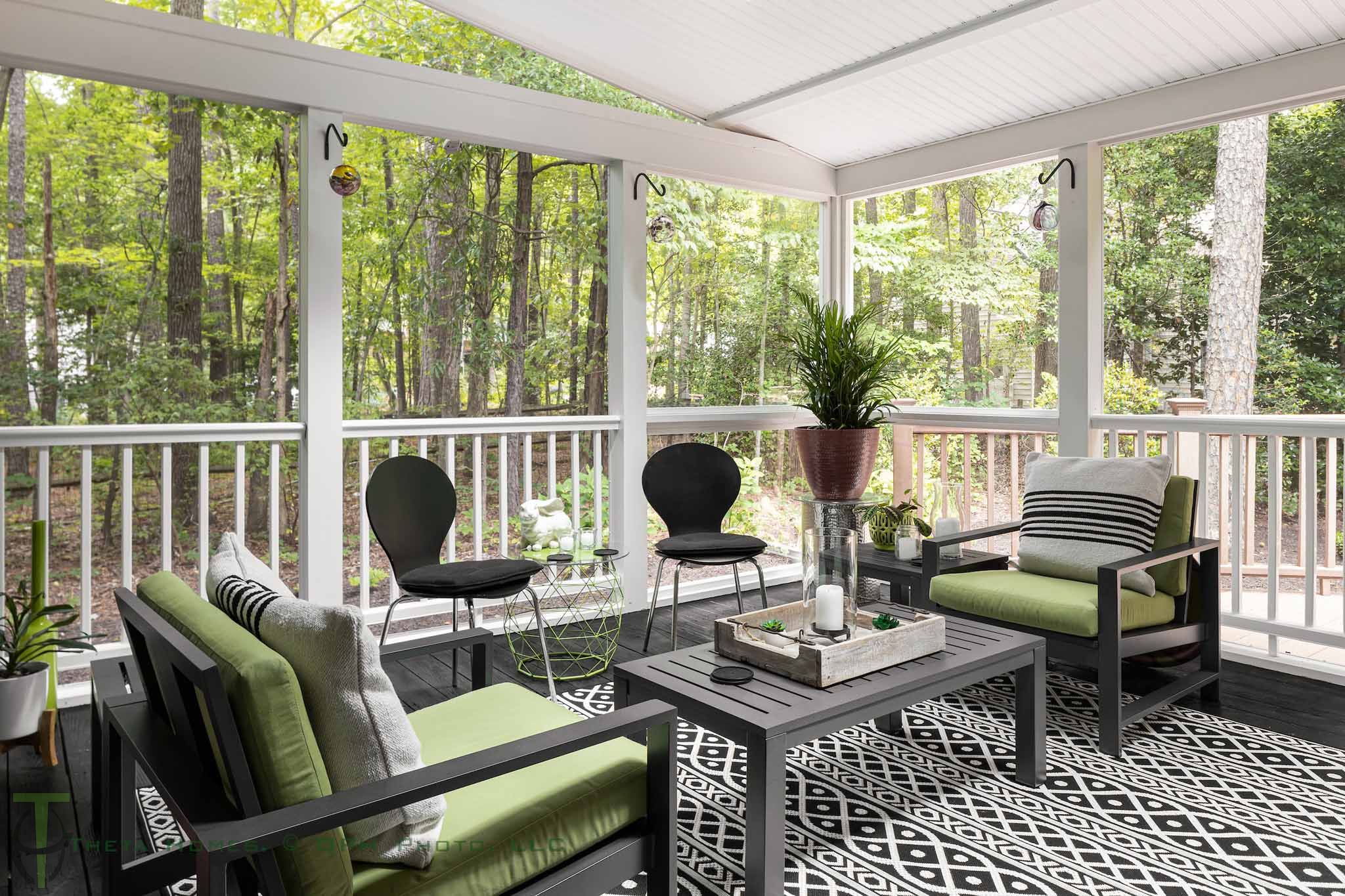 - Replace the screen porch screen and add railing as well as acrylic panels in corners for enhanced beauty and protection