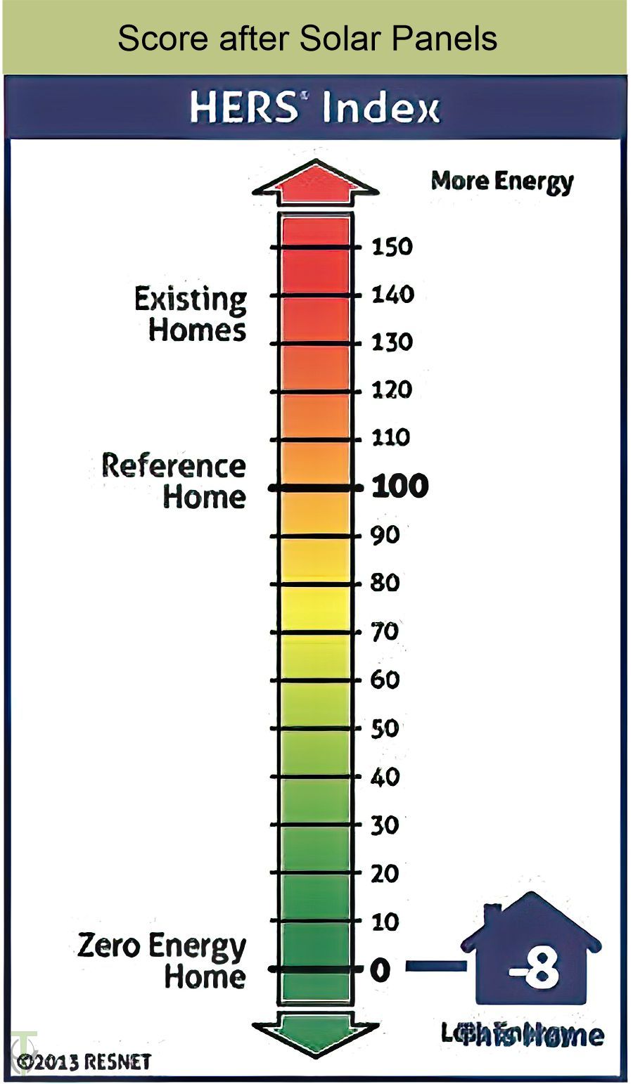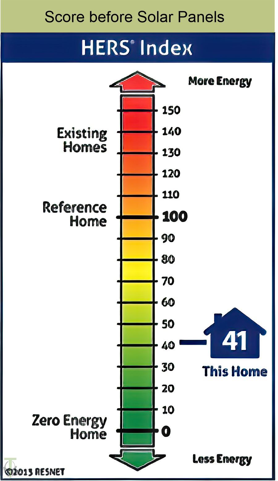 - HERS: 41 before solar panels; -8 after solar panels installed