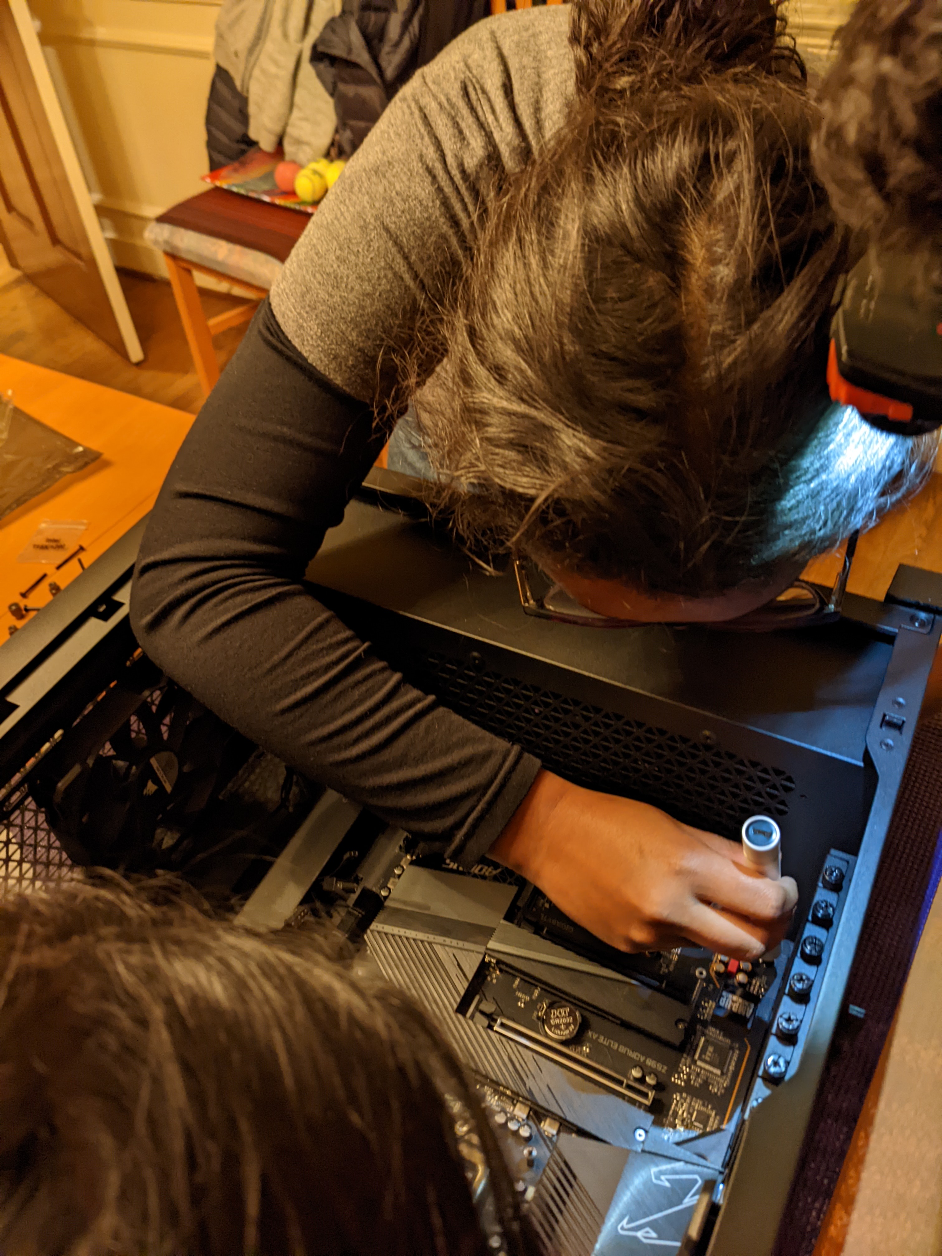 The idea was to help them understand what goes inside a computer. They were very eager and excited to learn. They learned what each component is called and its functions. They installed almost everything starting from the fan cooler to plugging the power switch to the motherboard. I also taught my own children when they were growing up.