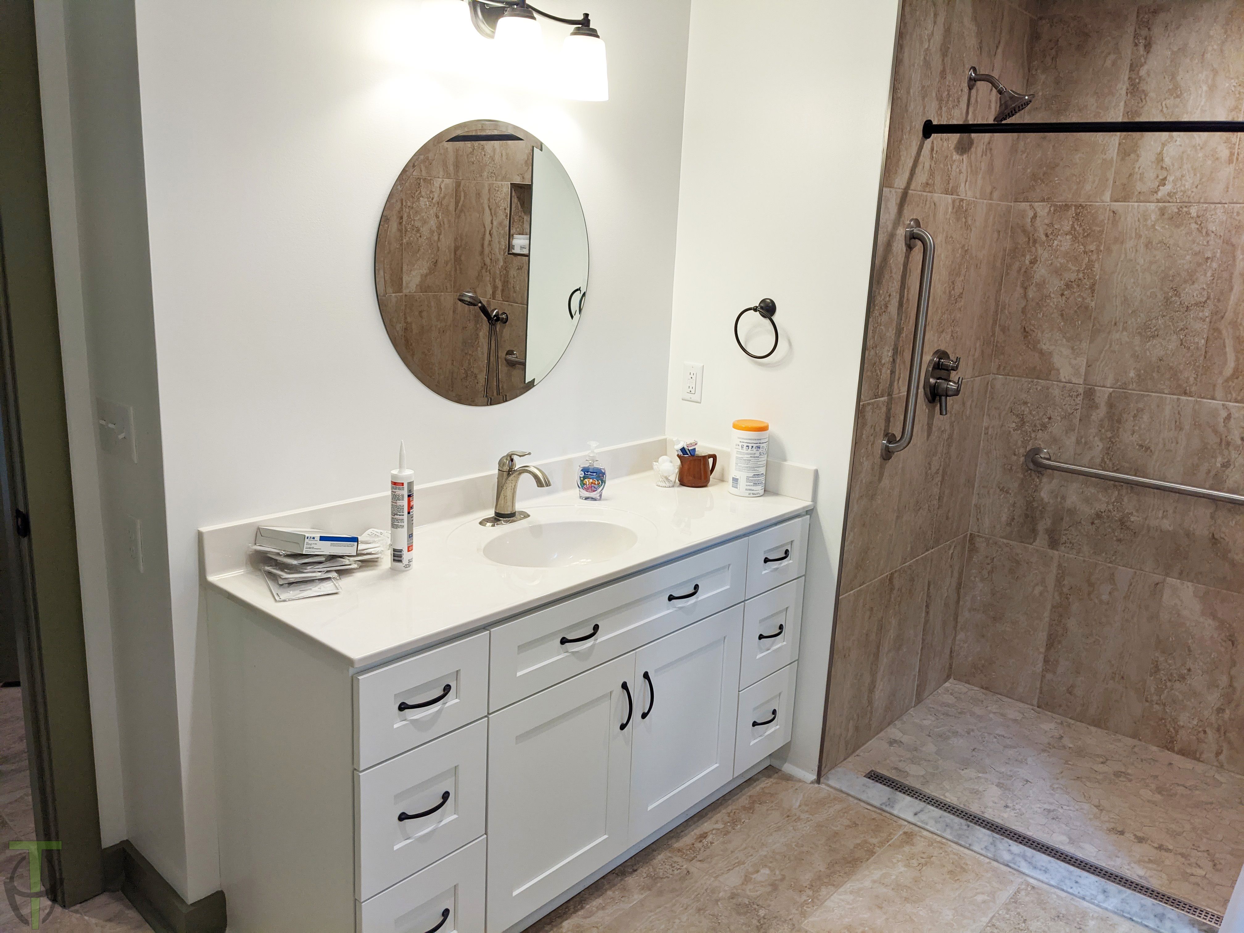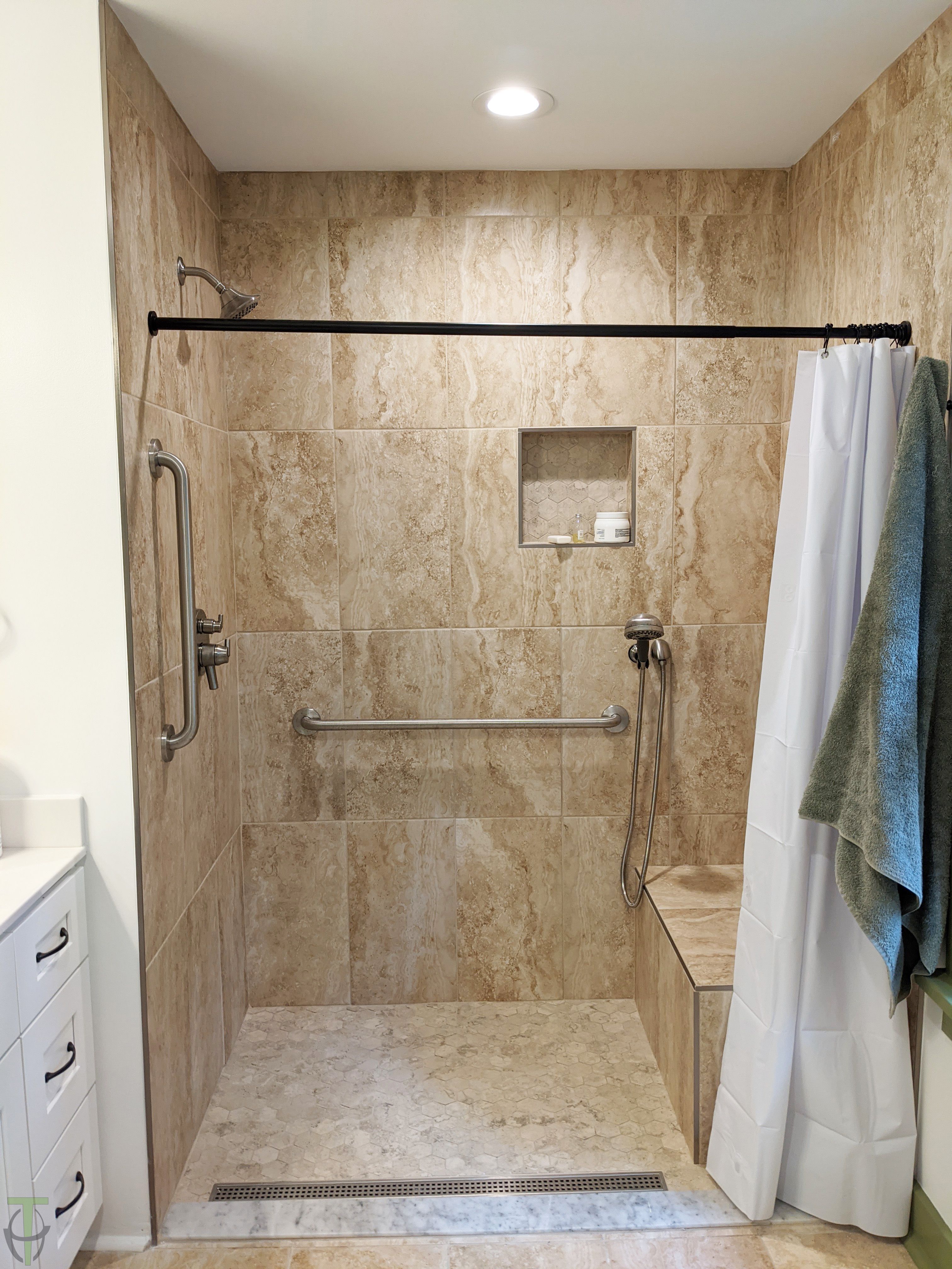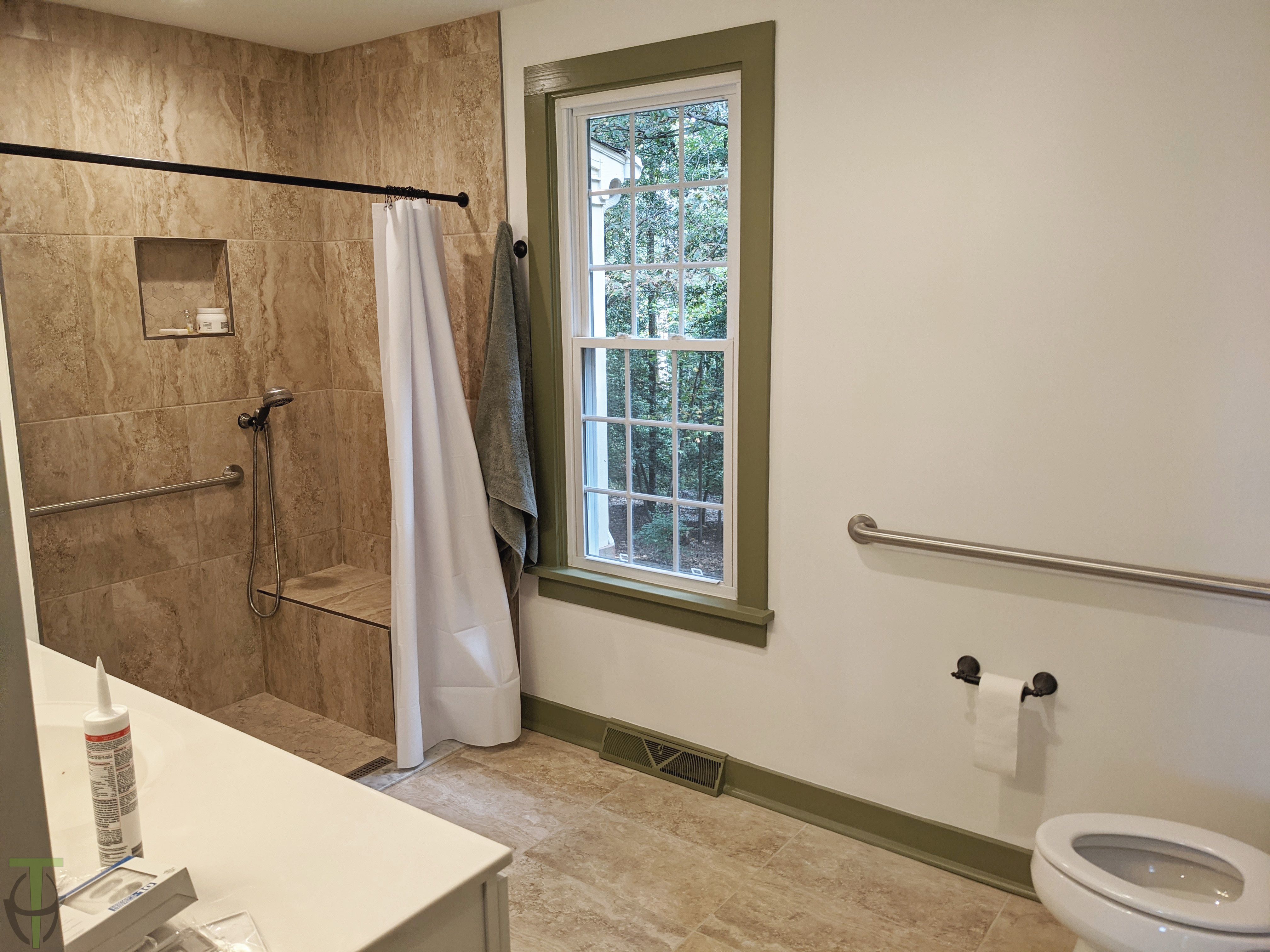 - Converted a bedroom into a accessible bathroom with roll-in shower, and a closet with access from their bedroom in 1st floor