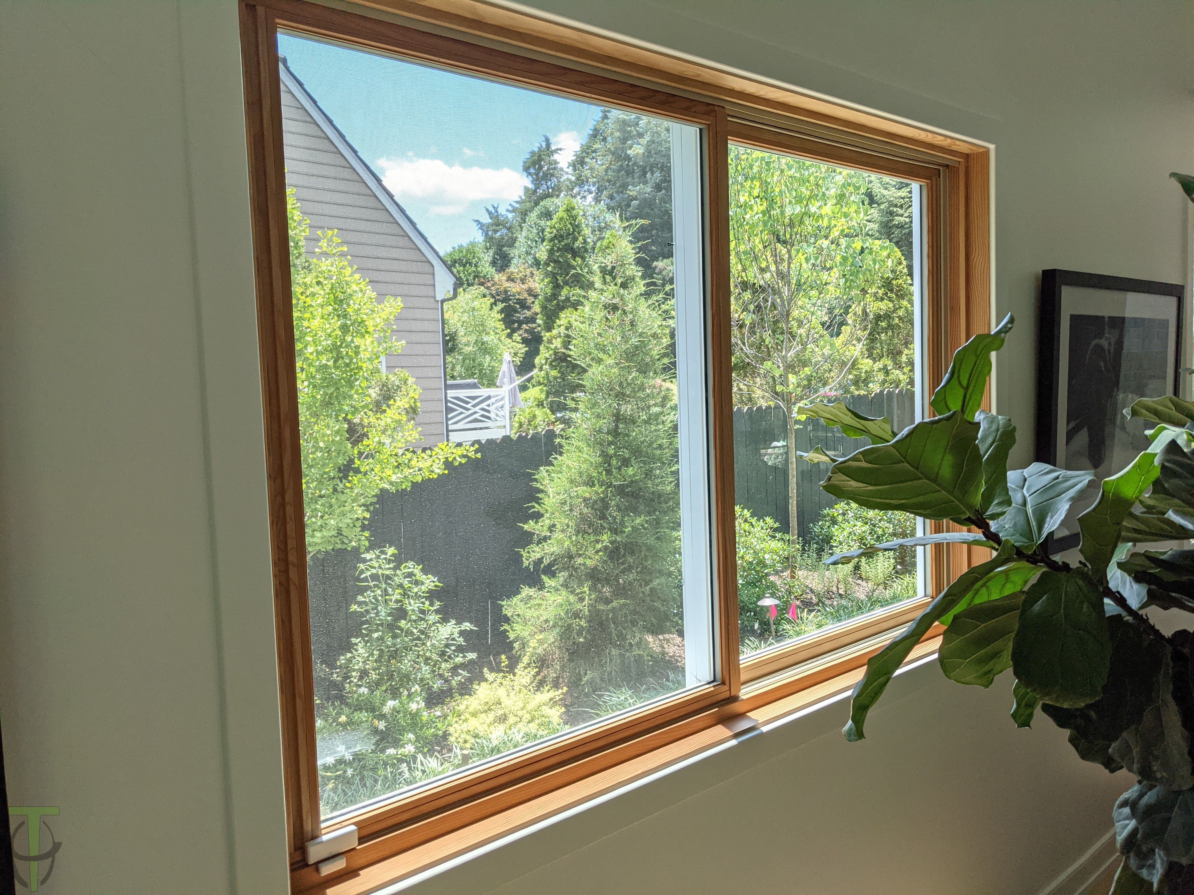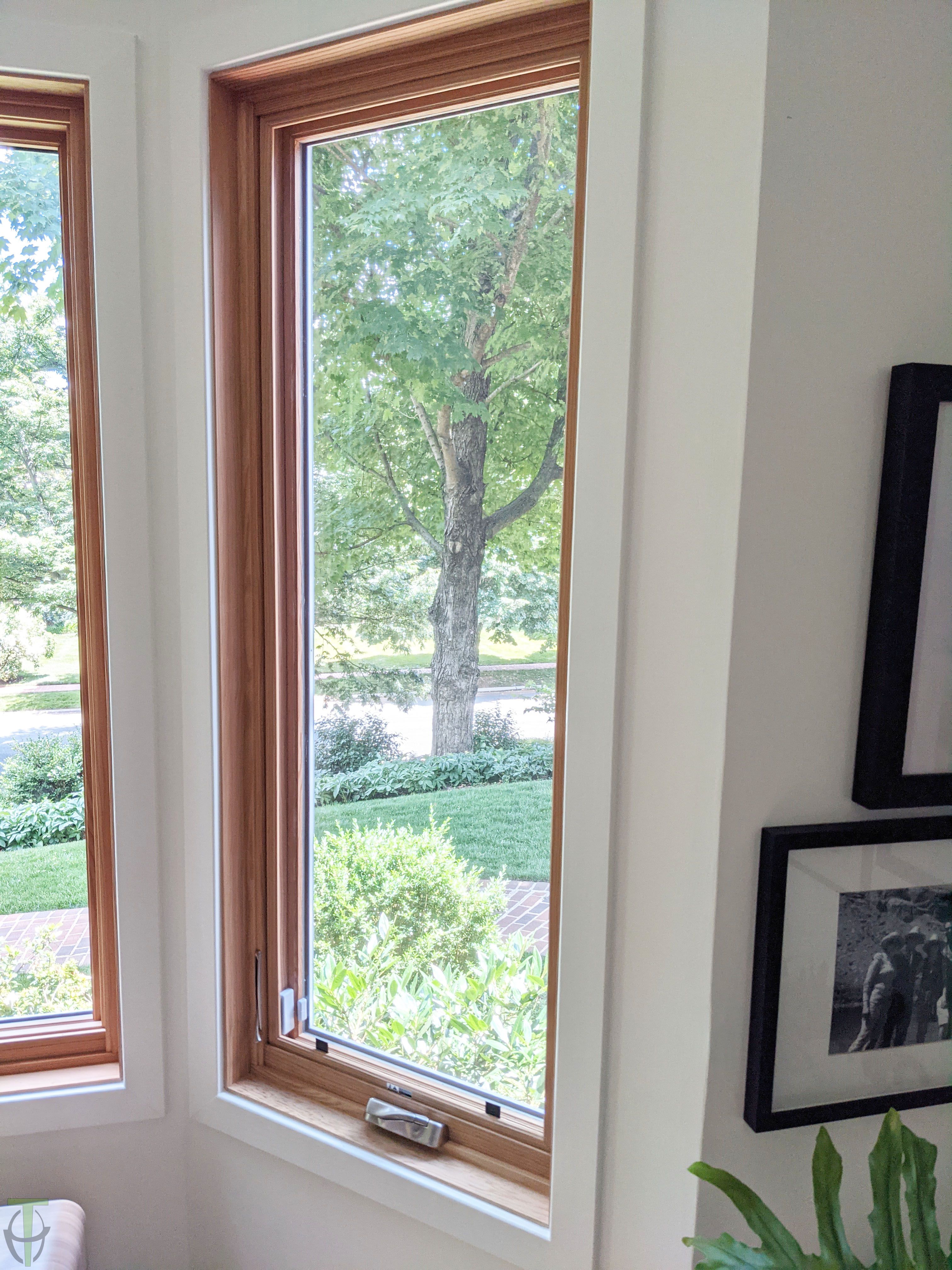We replaced windows and a sliding door. Owners wanted to replace some of the windows to be more functional for their lifestyle and also wanted a wood finish with a slimmer trim in the interior.