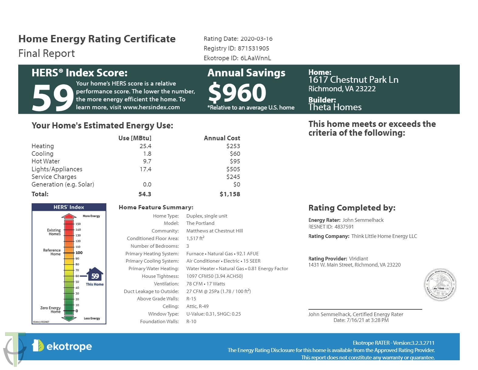 - 1617 = 1,120 sf; 2 bedrooms; 1 1/2 bath; HERC: 59