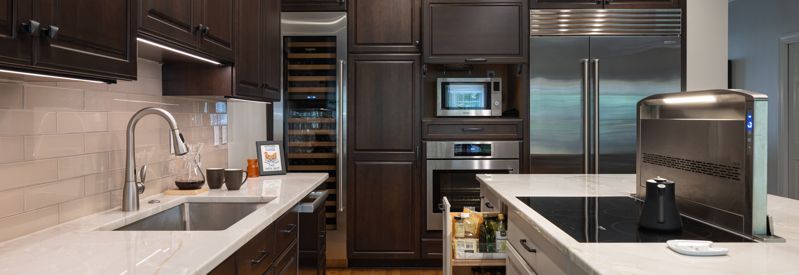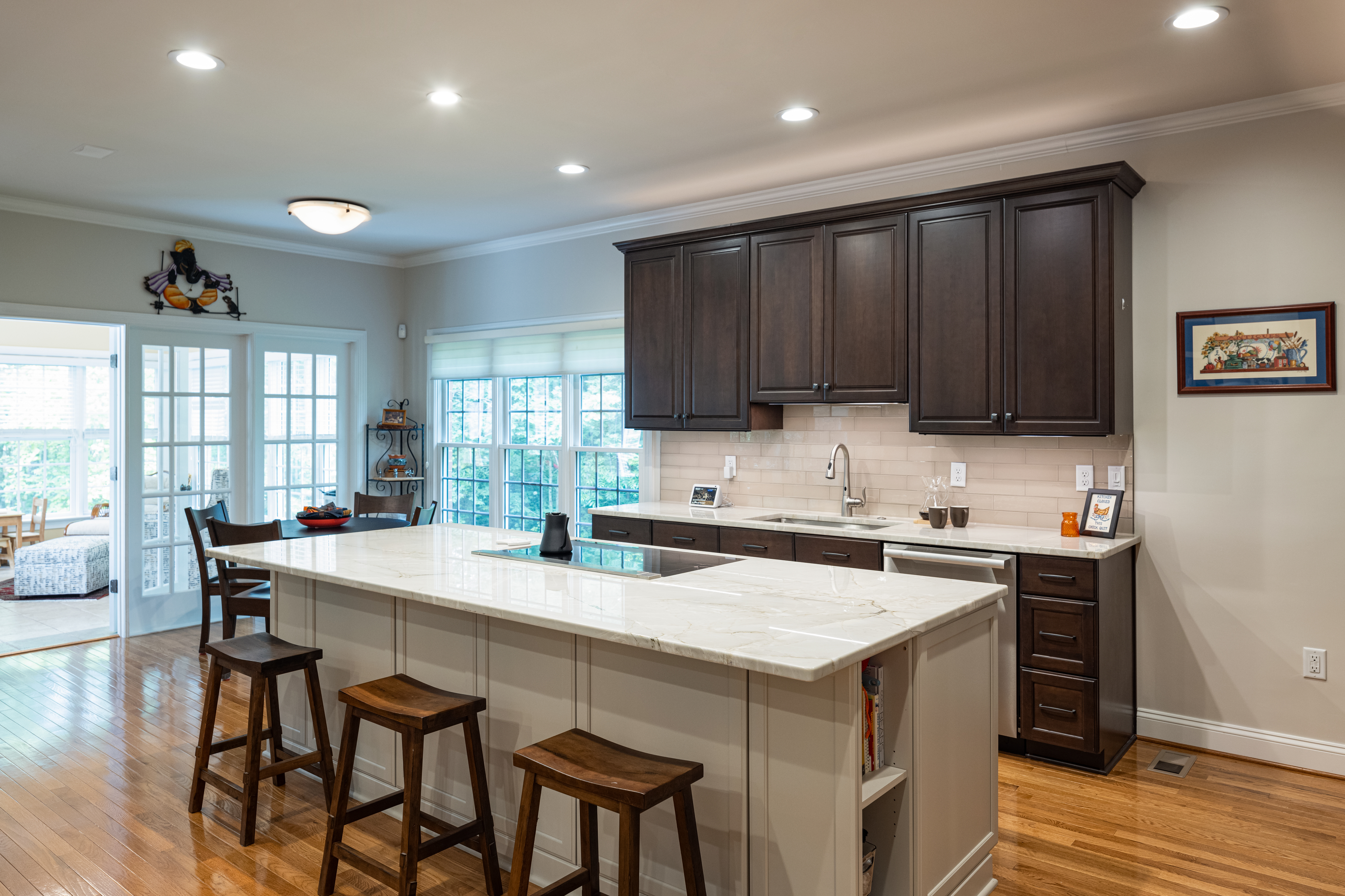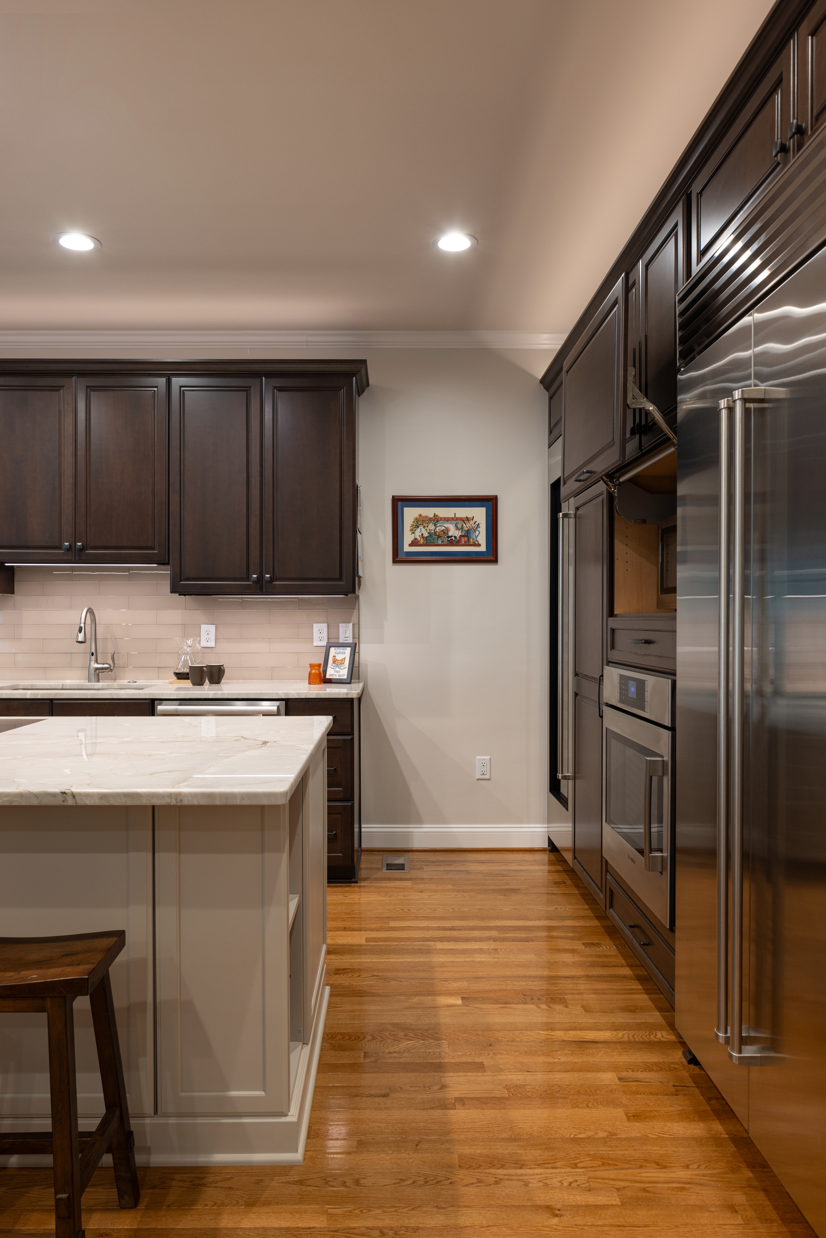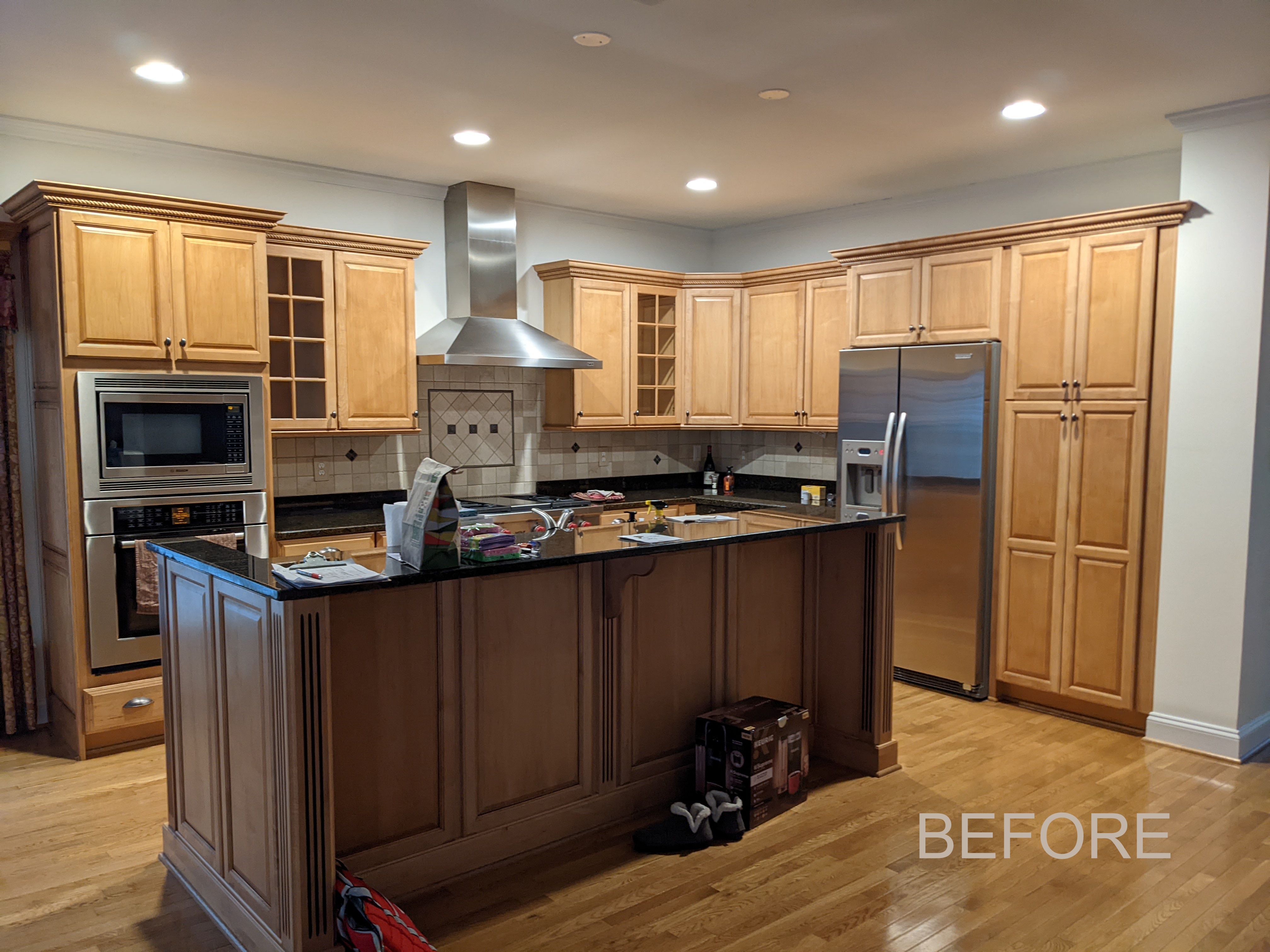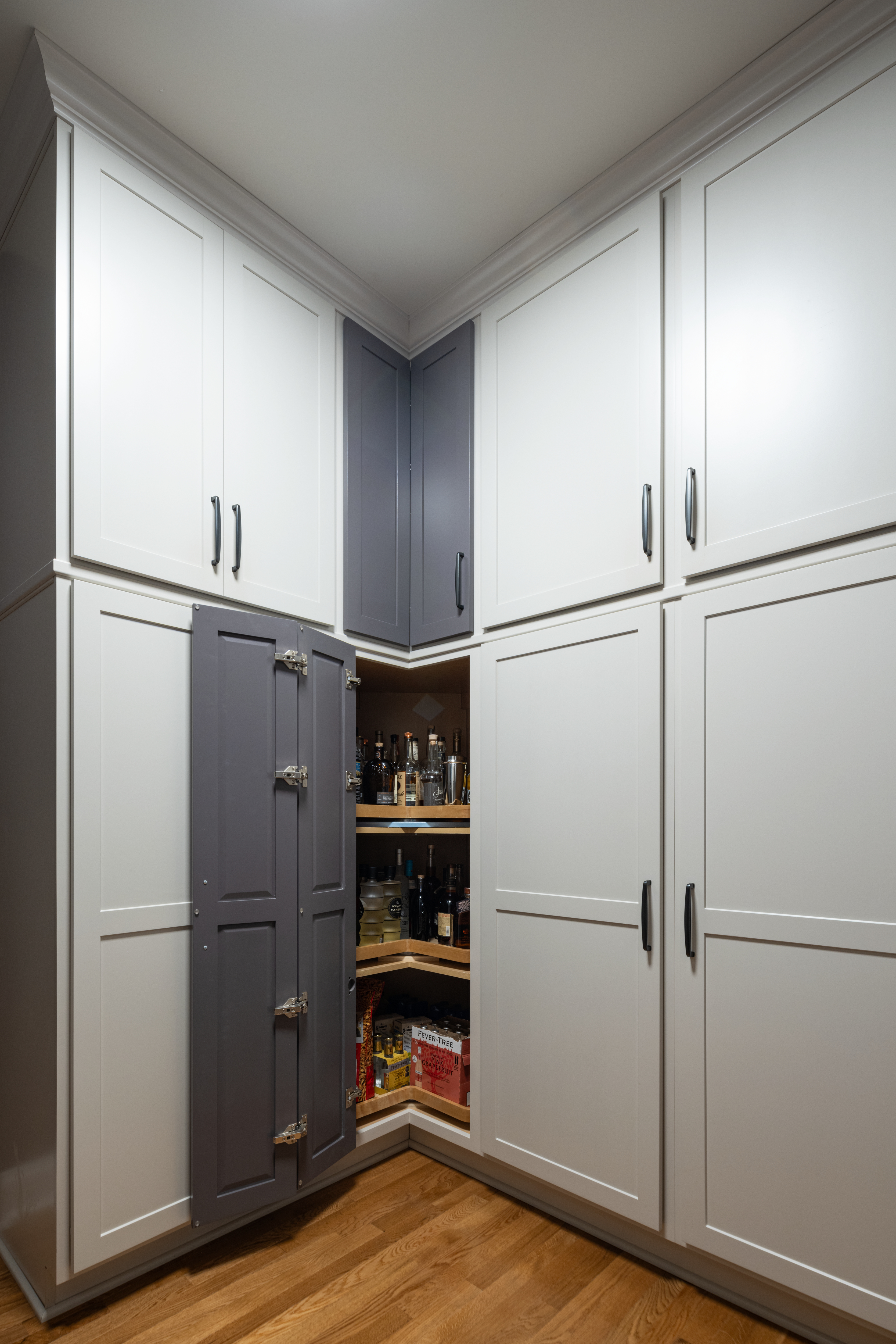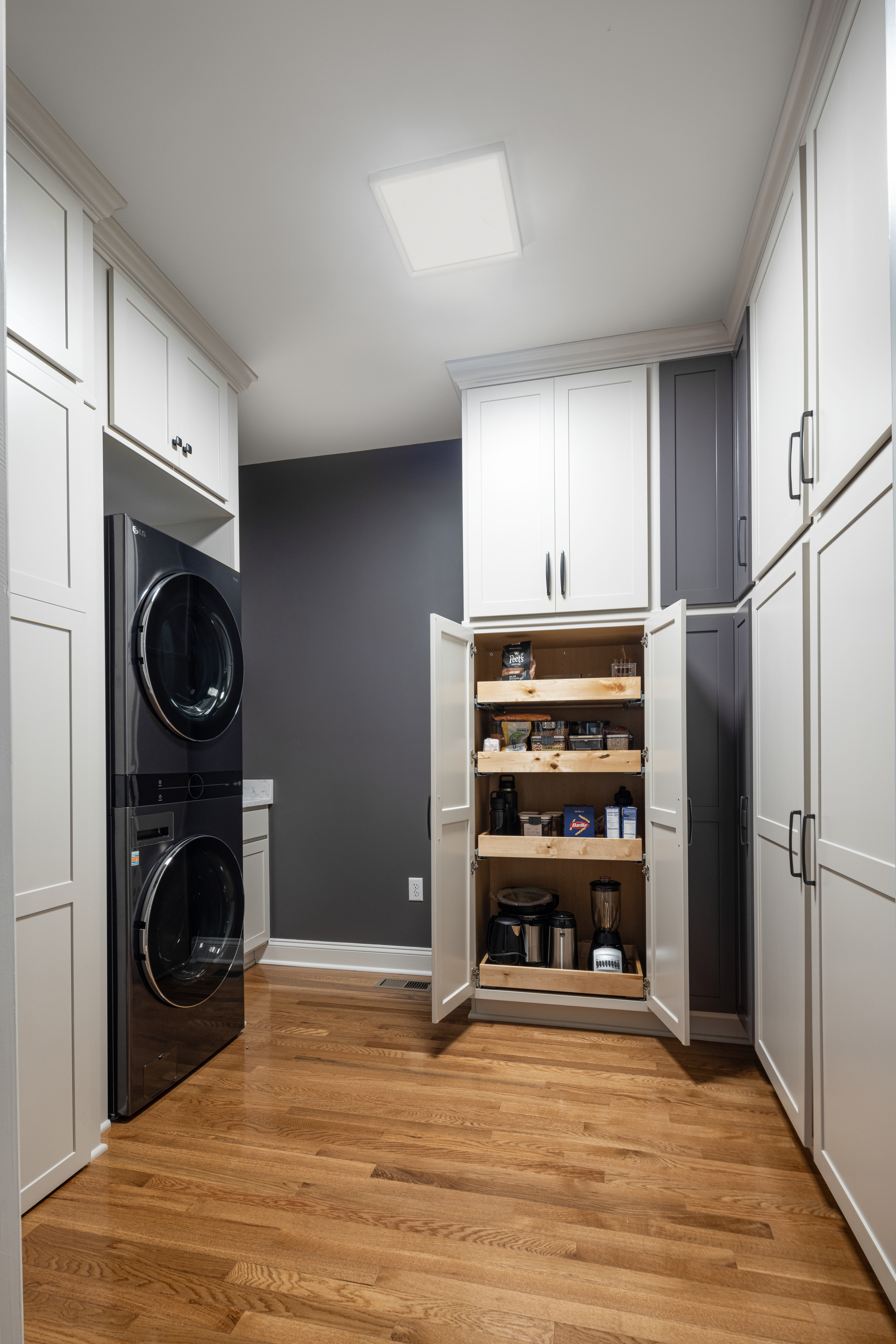 The Owners wanted to update the Kitchen and get a bigger Pantry after buying this relatively newer home. However, the Pantry was a small closet located in a chopped up space comprising of a half bath, laundry, coat closet, a short passage and a small pantry closet.