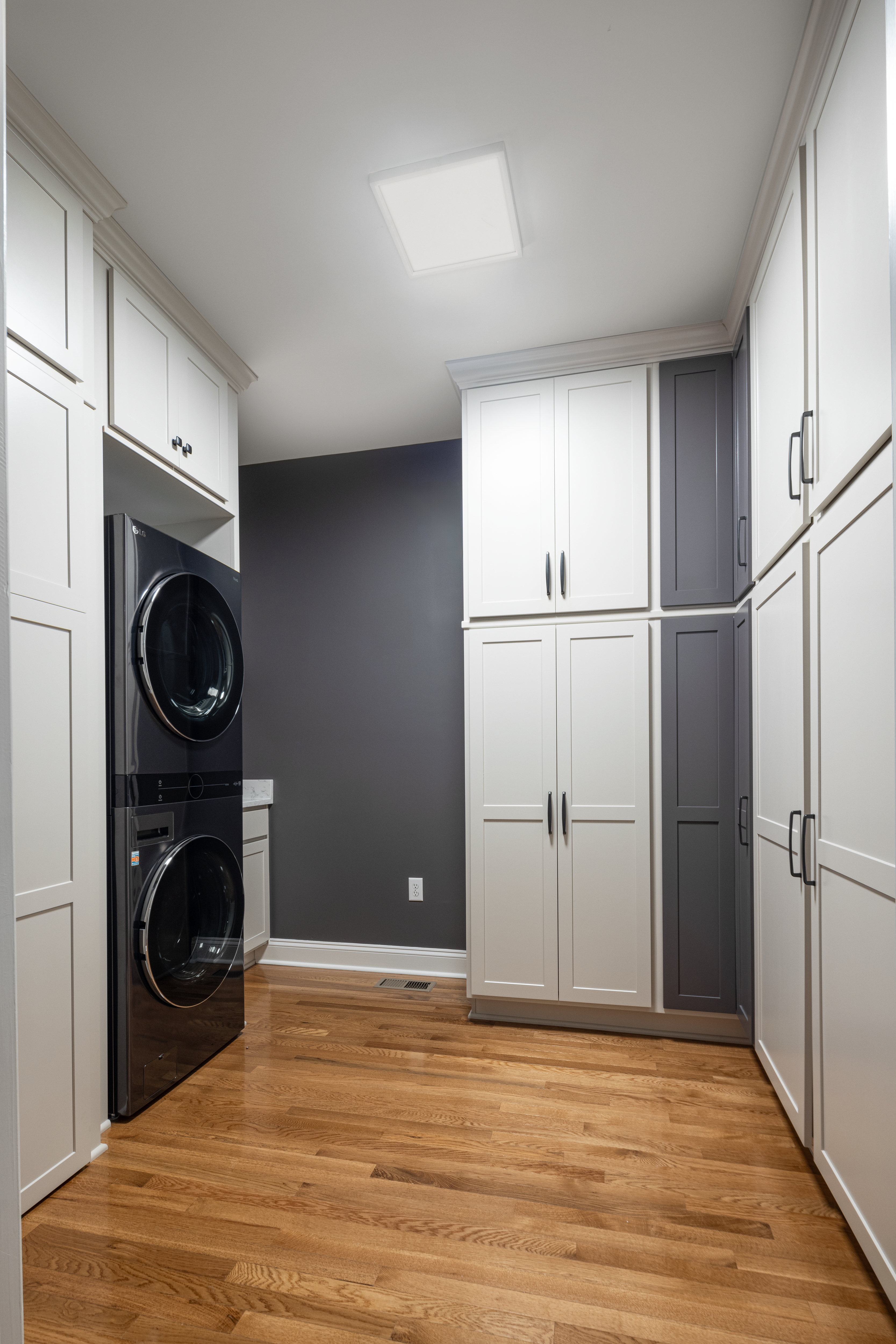 We removed everything in this chopped up space to create one single room with a huge Pantry, coat closet and Laundry. The scope included: