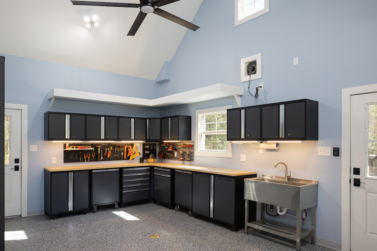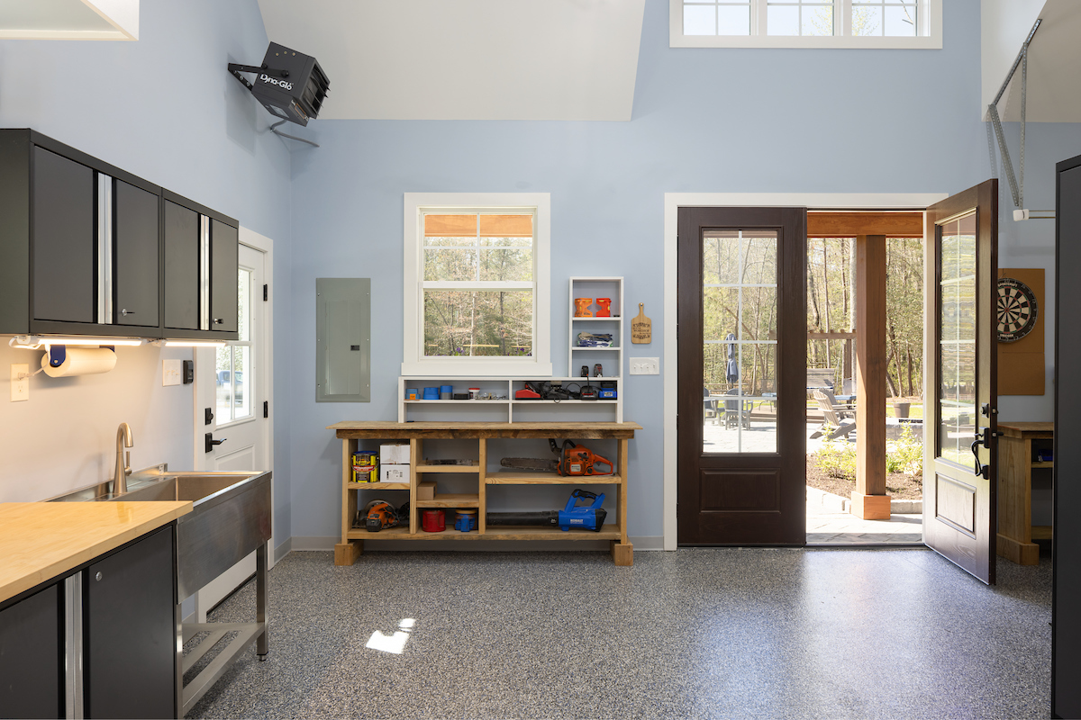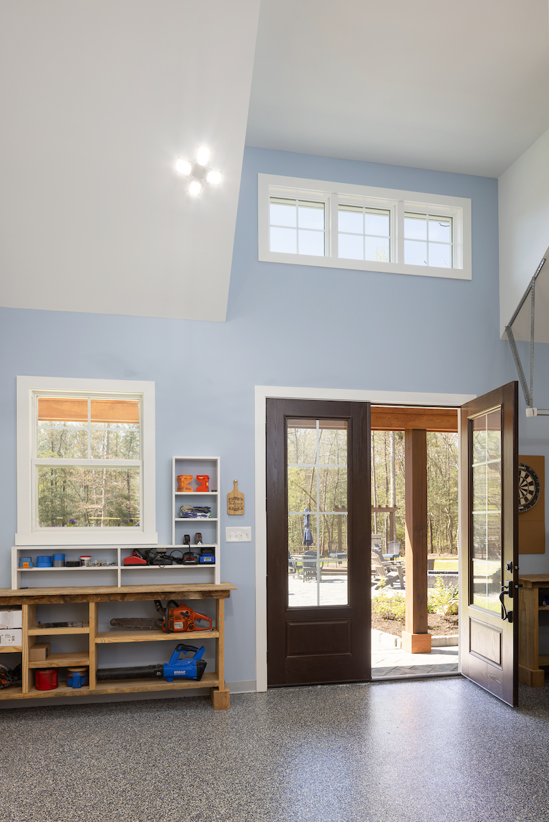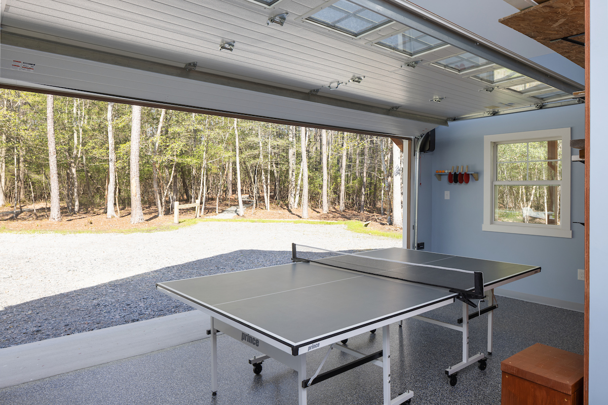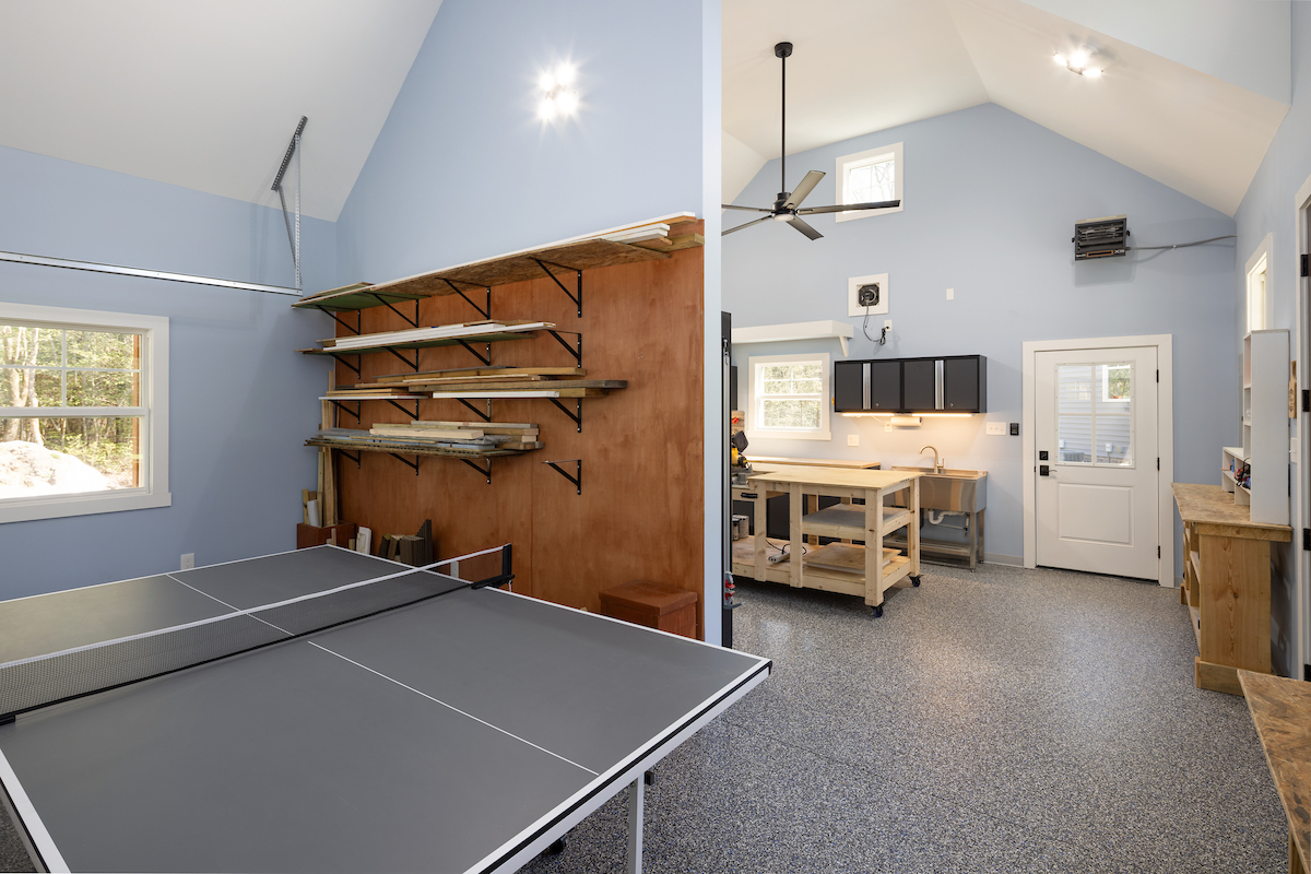 A Workshop addition that compliments the look of the existing home. About 2/3rd of the space is used for wood working and the rest for storing garden equipment, but owners placed a ping-pong table to enjoy some game time after a hard days work. The scope included: