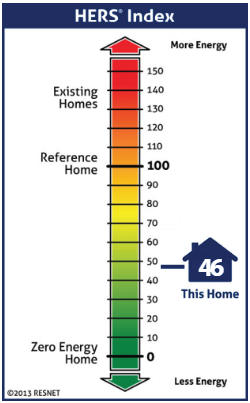 This home received a HERS 46 which means it is 54% more efficient than a code built home.