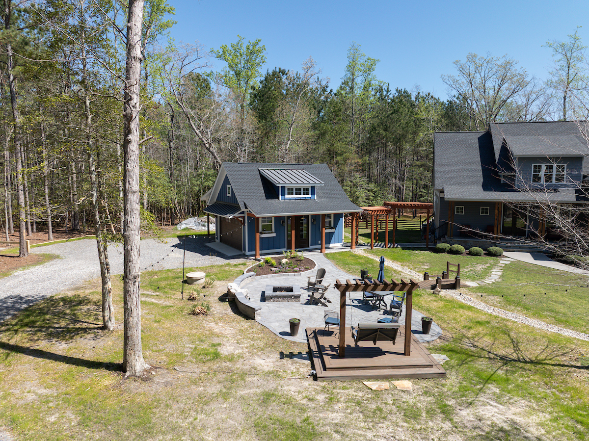 The Owners built pergolas in the walkay by themelves. Incredible craftsmanship. They also added a beautiful patio in front with fireplace and seating.